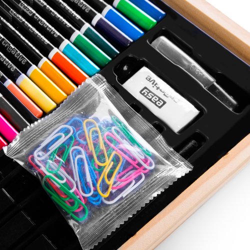 - Praktické doplňky: Lahvička na vodu, paleta pro míchání barev a dokonce 30 kancelářských sponek pro udržení pořádku ve vašich výtvorech.