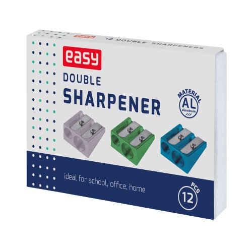 Dvojité ořezávátko EASY je vyrobeno z odolného materiálu - hliníku. Použitý materiál zaručuje vysokou odolnost a dlouhou životnost ořezávátka. Tento model dvoudílného ořezávátka je ideální pro ostření grafitových tužek a pastelek s průměrem 8 a 10 mm.