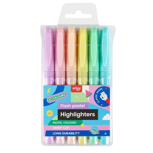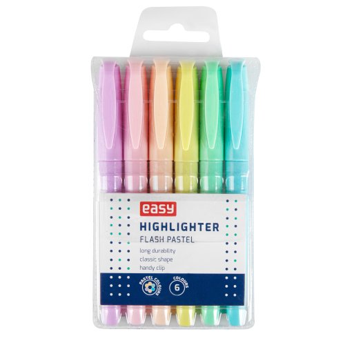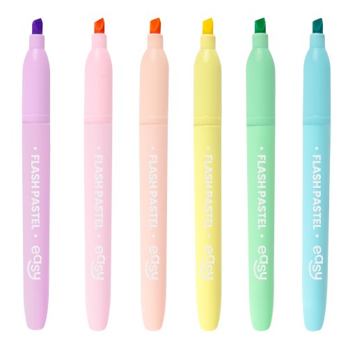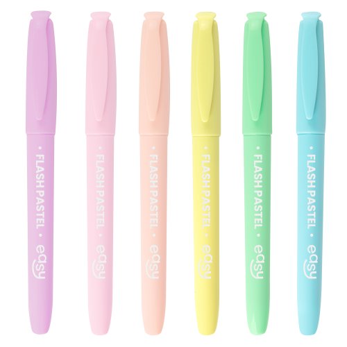 Sada EASY FLASH PASTEL nabízí 6 neodolatelných pastelových odstínů, které rozzáří vaše poznámky a usnadní vám učení. Vyberte si z něžné fialové, svěží zelené, sluneční žluté, sladké broskvové, nebesky modré a romantické růžové. Každá barva dodá vašim poznámkám osobitý styl a pomůže vám snadno se v nich orientovat. Zvýrazňovače jsou vhodné pro všechny druhy papíru a snadno se čistí z většiny povrchů.