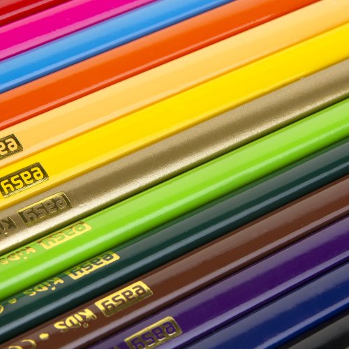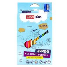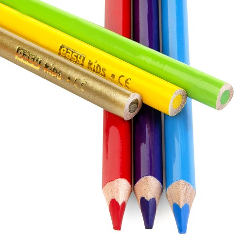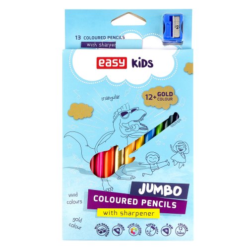 EASY COLOUR JUMBO to je sada 13 trojhranných pastelek z přírodního materiálu - dřeva. Sada se skládá ze 12 pastelek v klasických barvách a jedné jedinečné pastelky ve zlaté barvě. Navíc sada obsahuje i ořezávátko! Pro dosažení tenké, přesné čáry stačí naostřit tuhu. Díky optimální tvrdosti se skvělé hodí také k vybarvování.