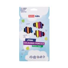 EASY COLP JUMBO to jsou trojhranné pastelky z bezdřevé pryskyřice vyrobené z 80 % z recyklovaného materiálu. Sada obsahuje 12 živých a intenzivních barev.