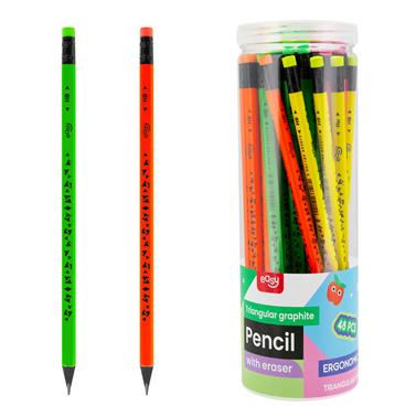 Tužka EASY Kids Fluo s tvrdostí HB je ideální pro psaní, skicování, vyplňování formulářů, sešitů nebo řešení matematických úloh. Její grafit zanechává poměrně tenkou a tmavou čáru. Na konci tužky je vybavena barevnou měkkou gumou, která umožňuje rychle a snadno vymazat nebo opravit chybu.