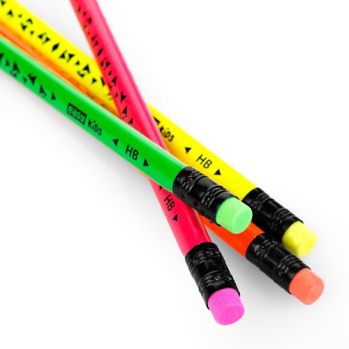 Sada tužek EASY Kids Fluo s tvrdostí HB jsou ideální pro psaní, skicování, vyplňování formulářů, sešitů nebo řešení matematických úloh. Jejich grafit zanechává poměrně tenkou a tmavou čáru. Na konci se nachází barevná měkká guma v barvě tužky, která umožňuje rychle a snadno vymazat nebo opravit chybu.