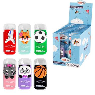 Korekční strojek EASY FUNNY TAPE zaujme na první pohled svými originálními dětskými vzory. Veselá zvířátka a míče v různých barevných provedeních dodají každému školnímu pouzdru šmrnc. Ergonomický tvar strojku zajišťuje pohodlné a snadné používání.