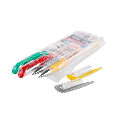Barevná gelová pera se třpytkami zpestří nejeden projekt a dodají jim jemný lesk. Jemný gel lze použít jak k psaní textu, tak ke zdobení větších ploch papíru.