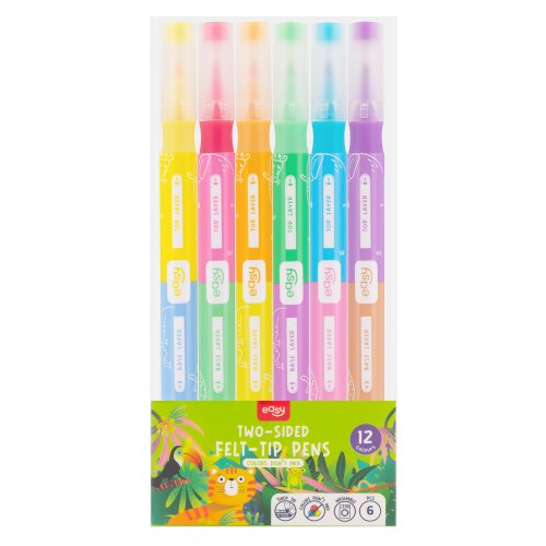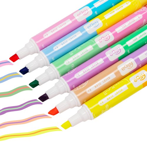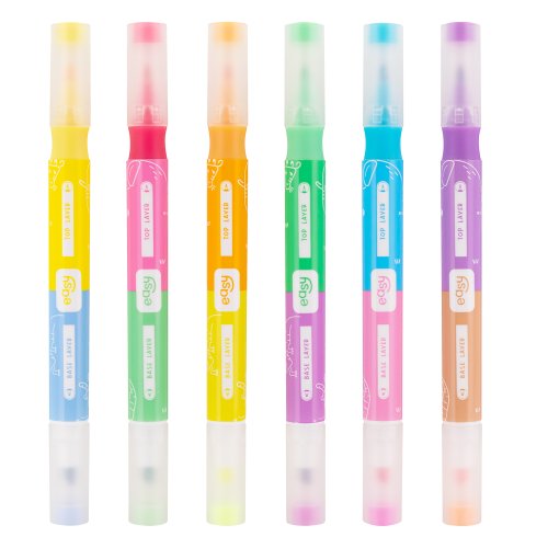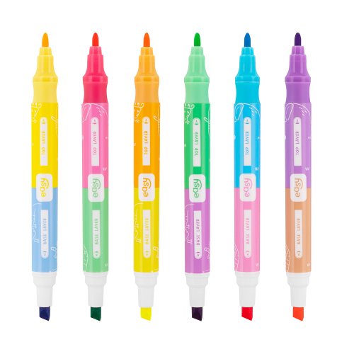 S oboustrannými fixy Easy Kids MAGIC odolnými proti překrytí získáte nástroj, který vám umožní svobodně tvořit bez obav z vyblednutí či změny barev. Tato sada obsahuje 6 oboustranných fixů, které vám nabízejí 12 zářivých odstínů – každý konec fixu má jinou barvu, takže budete mít vždy po ruce ten správný tón. Na každém konci najdete rovněž dva různé hroty: kulatý se šíří stopy 1 mm a seříznutý se šíří stopy 4 mm.