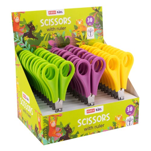 S těmito praktickými a bezpečnými školními nůžkami EASY Kids s měřítkem bude stříhání pro děti hračka!