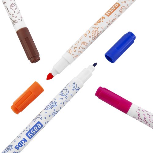 Fixy EASY Kids jsou vhodné pro psaní a kreslení na papír. Jsou snadno vypratelné z oblečení a lehce smývatelné z hladkých povrchů.
