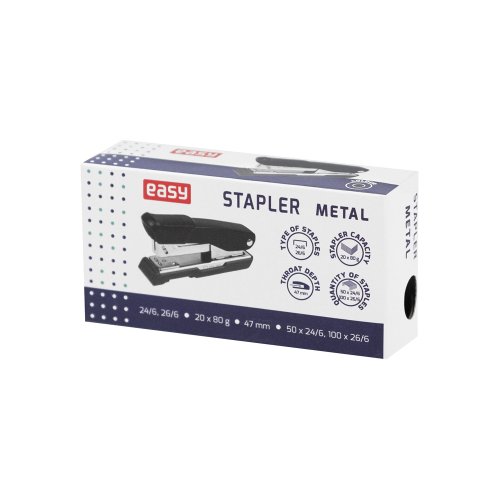 Hledáte spolehlivou sešívačku, která zvládne i náročnější úkoly a zároveň bude vypadat stylově na vašem pracovním stole? Kovová sešívačka EASY v elegantní černé barvě je přesně to, co potřebujete!
