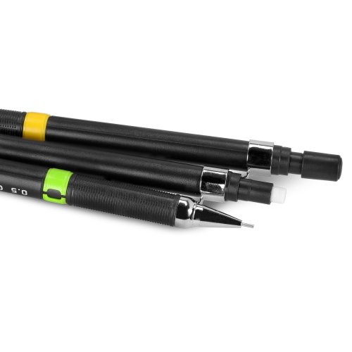 Mechanická tužka je skvělou volbou pro ty, jenž chtějí vést přesnou a velmi tenkou čáru, bez nutnosti opakovaného ostření hrotu. Pentilka je vybavena pohodlným, automatickým systémem vysouvání tuhy. Pro vysunutí koncovky stačí jednou kliknout. Po použití lze úplně stejným systémem tuhu schovat zpět, díky čemuž mechanická tužka nezanechá v penálu či tašce zbytky grafitu. Tělo mechanické tužky je vyrobeno v elegantní černé barvě s jemnými barevnými doplňky.