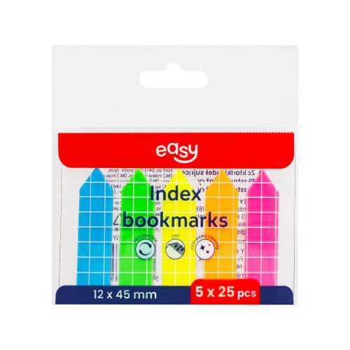 Plastové značkovací záložky jsou odolné, mají intenzivní, výrazné barvy a dokonale přiléhají k povrchu listů papíru. Díky tomu se neodlepí ani během intenzivního používání. Lepidlo použité na záložkách je pro papír bezpečné.