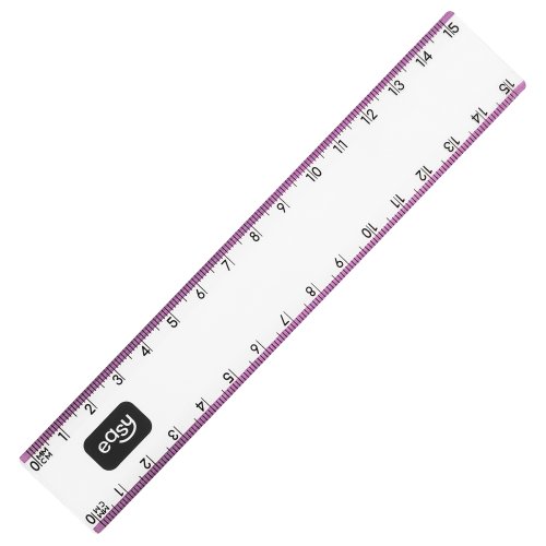 pravítko: délka 15 cm, dvojité měřítko (cm a palce)