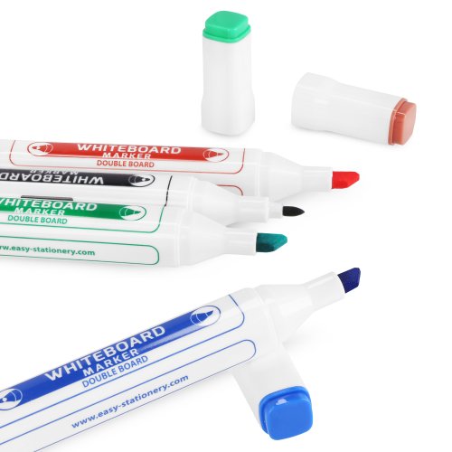 Použitý průměr korpusu usnadňuje pohodlné uchopení a vedení popisovače po tabuli. Díky čtvercovému tvaru korpusu se vám popisovač nikdy neskutálí ze stolu. Bílá barva korpusu dokonalé ladí s tabulí a víčka v barvě náplní vám usnadní výběr vhodné barvy ke psaní. Víčko zabraňuje vysychání náplně a náhodnému znečištění v době, kdy popisovač nepoužíváte. Sada obsahuje houbičku pro snadné a rychlé smazání poznámek.