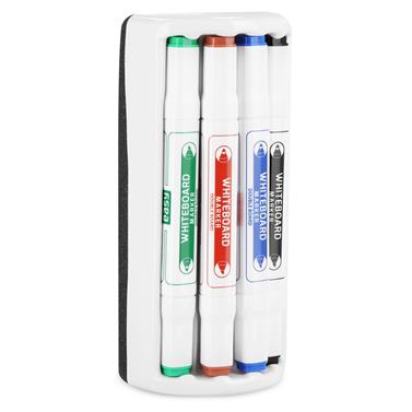 Sada 4 oboustranných popisovačů s houbičkou na bílé tabule a sklo.