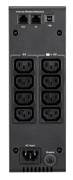 VÝSTUP Kapacita výstupního výkonu [W]: 900 Kapacita výstupního výkonu [VA]: 1500 Jmenovité výstupní napětí [V]: 230 Topologie: Interaktivní UPS (AVR se zvyšováním + snižováním napětí) Výstupní přípojky: (4) IEC-320-C13, (4) IEC-320-C13 surge only
