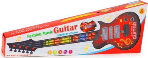 Má vaše dítě rádo hudbu a chtělo by se stát skutečným Rockmanem? Tato elektrická kytara v něm vzbudí opravdovou vášeň a bude vhodným dárkem pro každého malého hudebníka. Kytara má 4 nylonové struny . Tlačítky lze aktivovat různé melodie a zvuky . Barevné LED osvětlení je posledním, ale v neposlední řadě důležitým prvkem této jedinečné kytary.