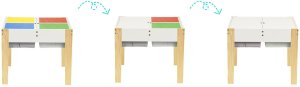 Sada obsahuje: herní stůl s odnímatelnou deskou, 4 výsuvné přihrádky, 2 židličky