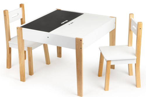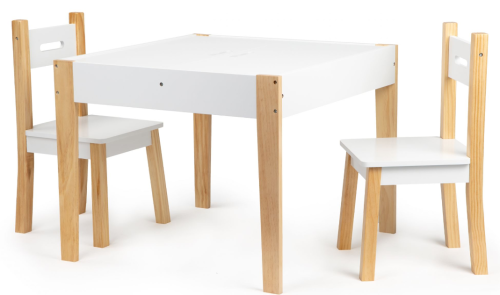 Sada obsahuje: herní stůl s odnímatelnou deskou , 2 židličky Vhodné pro děti od 3 let.