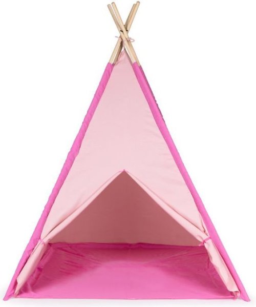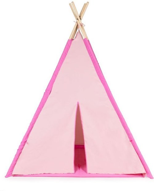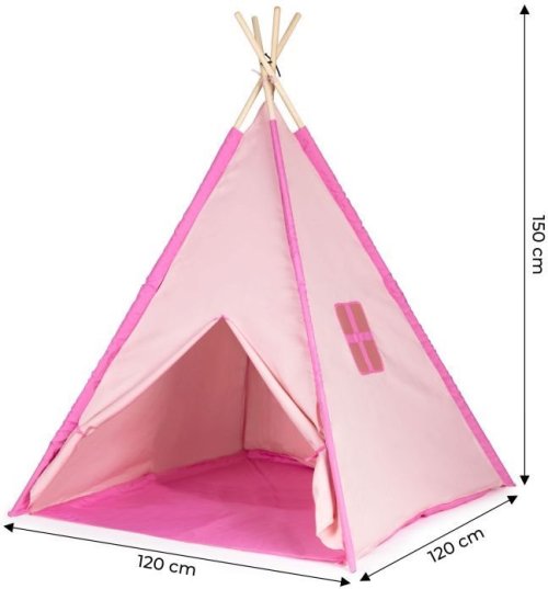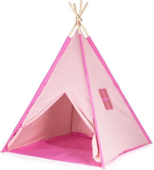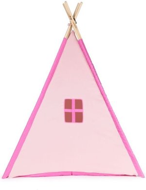 Dětský stan s kvalitní dřevěnou konstrukcí a okénkem v růžové barvě.