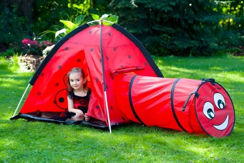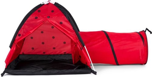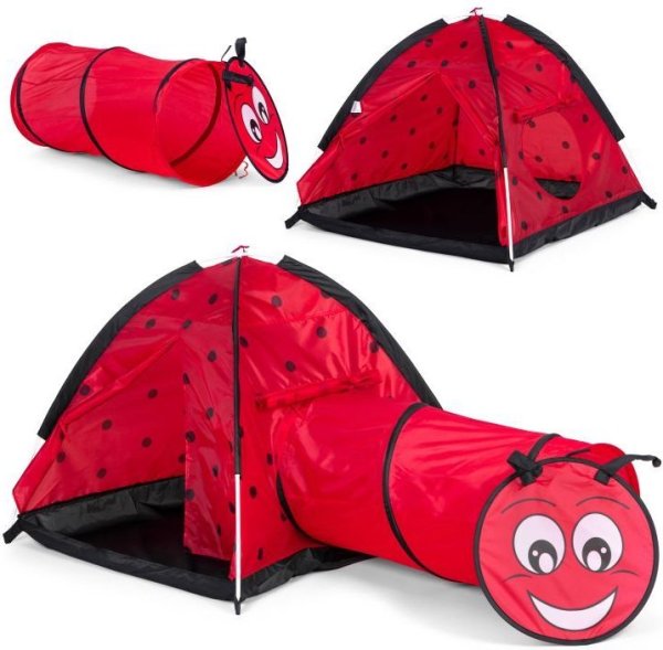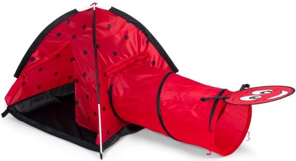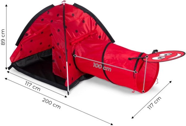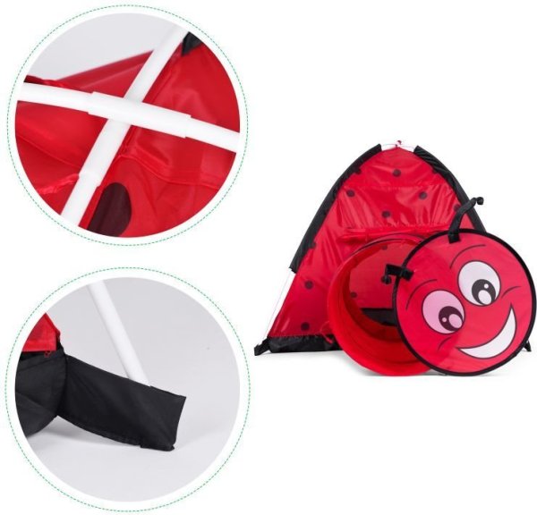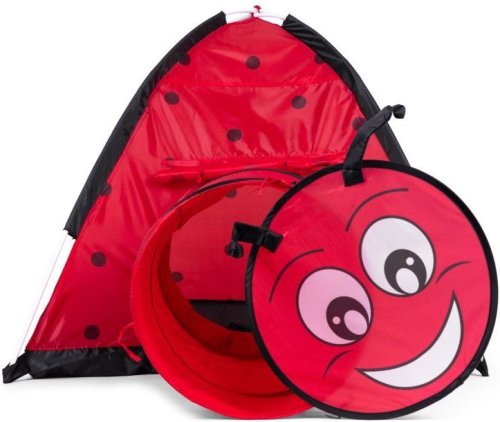 Ideální pro hru v dětském pokoji, ale i na zahradu, kde stan poskytne stinné útočiště vhodné pro odpočinek. Stan zaujme svou veselou barevností na první pohled a zajistí zábavu na dlouhou dobu. Podpořte fantazii svého dítěte a pomozte mu postavit jeho skrýš. Součástí stanu je i krátký tunel, který je zakončen obličejem berušky. Rozměry: 170 x 112 x 94 cm.