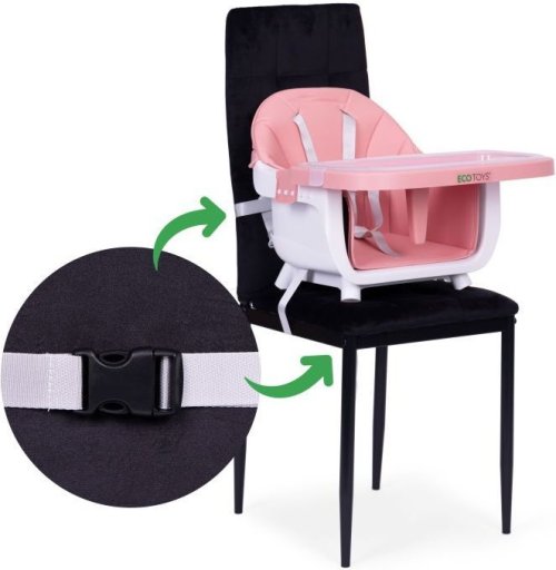 Jídelní židlička 2v1 od značky ECOTOYS je multifunkční řešení pro děti od 6 do 36 měsíců. Nabízí dvě možnosti použití: jako vysoká jídelní židlička nebo jako sedátko připevněné k běžné židli. Toto praktické řešení ocení každý rodič během rodinných výletů nebo cestování. Výhody židličky: