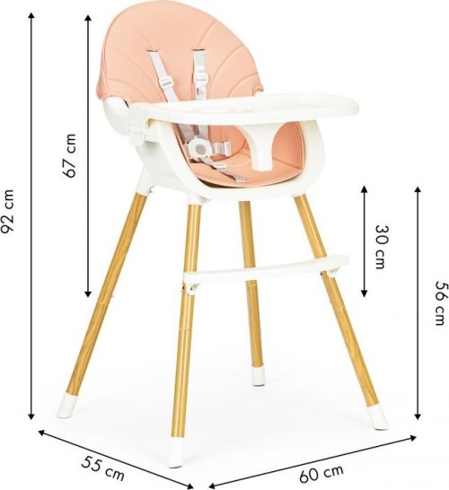 Moderní jídelní židlička 2v1 je vyrobená z kvalitního materiálu. Stolička je vhodná pro děti od 6 do 36 měsíců. Může být sestavena ve dvou výškách. Výhody židličky: