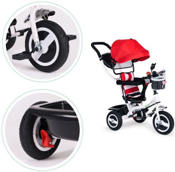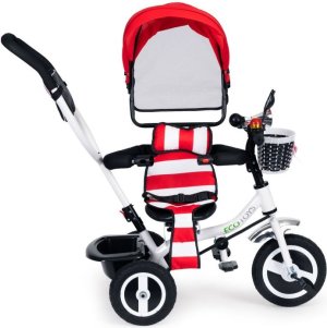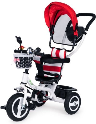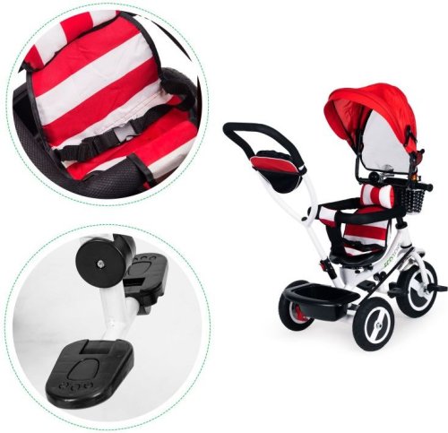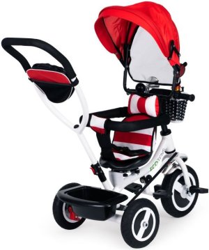 Bezpečná tříkolka s vodící tyčí a stříškou pro děti od 12 měsíců. Tříkolku lze používat jako vozík, kdy můžete dítě pouze tlačit pomocí vodící tyče. Nohy dítěte jsou přitom umístěny na bezpečnostních stupačkách. Výhody tříkolky: