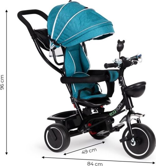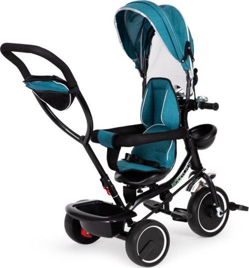 Bezpečná tříkolka s vodící tyčí a stříškou pro děti od 12 měsíců. Tříkolku lze používat jako vozík, kdy můžete dítě pouze tlačit pomocí vodící tyče. Nohy dítěte jsou přitom umístěny na bezpečnostních stupačkách. Výhody tříkolky: