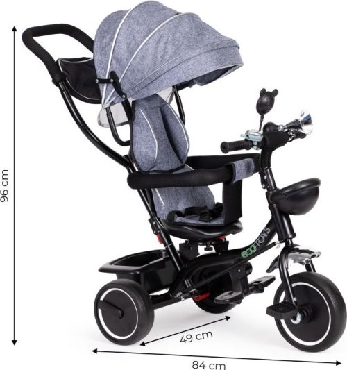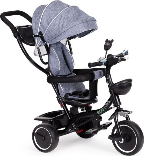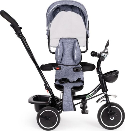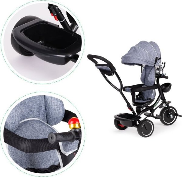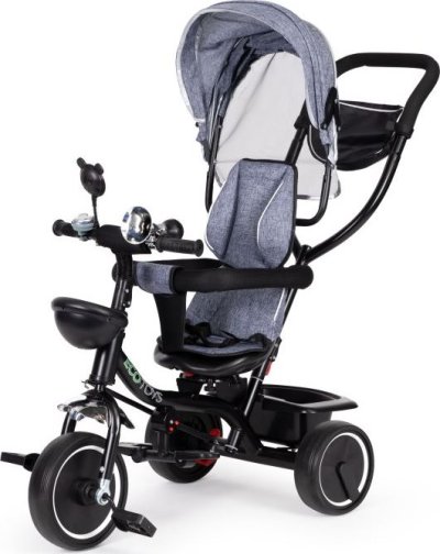 Bezpečná tříkolka s vodící tyčí a stříškou pro děti od 12 měsíců. Tříkolku lze používat jako vozík, kdy můžete dítě pouze tlačit pomocí vodící tyče. Nohy dítěte jsou přitom umístěny na bezpečnostních stupačkách. Výhody tříkolky: