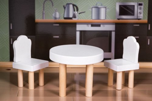 Rozměry domečku: 78 x 62 x 28 cm Dřevěná, bezpečná konstrukce 3 patra, 4 různé místnosti v jiném stylu a terasa Součástí je 15 kusů dřevěného nábytku Všechny prvky lze libovolně odstraňovat a přesouvat Rozvíjí představivost, kreativitu a manuální dovednosti