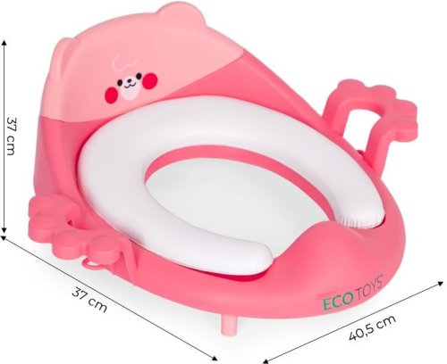 Odolná a snadno čistitelná konstrukce, měkký polštář pro maximální pohodlí, sedátko je vybaveno praktickými madly a protiskluzovými podložkami, univerzální velikost pasuje na všechny typy toalet, vysouvací prvky zaručují stabilní montáž, jedinečný design a tvar produktu dělají sedátko atraktivním pro děti, což je motivuje k samostatnosti.