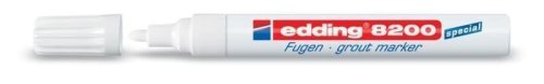 Bílý popisovač edding 8200 pro renovaci zašlých spár v koupelně či v kuchyni. Vysoce krycí a voděodolný inkoust je světlostálý a otěru odolný. Inkoust se snadno nanáší, rychle zasychá a odolá vůči rozmazání. Tok inkoustu je řízen ventilem, a proto je před prvním použitím potřeba popisovač protřepat, sejmout víčko a lehkým pumpováním umožnit inkoustu stéci do hrotu. Skladujte ve vodorovné poloze. Kulatý hrot. Šíře stopy: 2-4 mm. Balení obsahuje bílý popisovač a tři náhradní hroty. Vyrobeno v Japonsku.