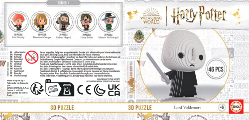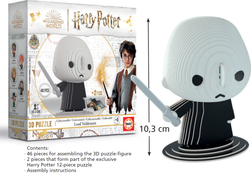Balení obsahuje: 46 dílků k sestavení 3D puzzle postavičky. 2 dílky exkluzivní 12dílné puzzle skládačky Harryho Pottera. Návod k sestavení. Rozměr složeného puzzle cca 10,3 cm