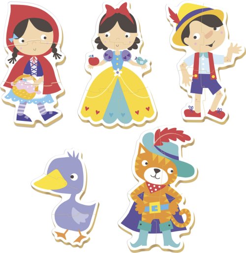 pět progresívních puzzle od 3 do 5 dílků, velké a silné dílky pro snadnější držení, rozvíjí dětskou pozornost, podporují psychomotorický vývoj, představivost a podporují zvědavost.