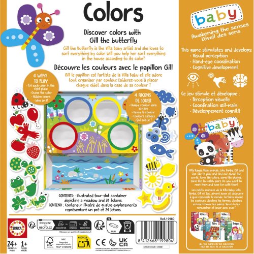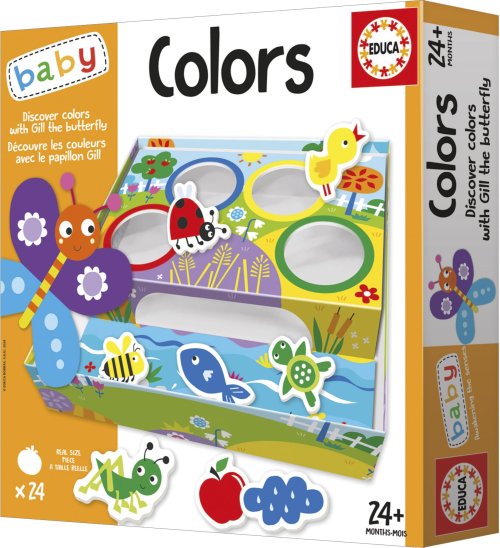 Hra EDUCA Baby se kterou se děti naučí přiřazovat a rozlišovat barvy s motýlem Gretou.