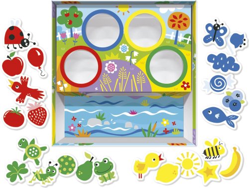 Přiřaďte prvky podle odpovídající barvy: žlutá, modrá, červená a zelená. Rozvíjí pozornost, jemnou motoriku, zvídavost a představivost. Velké a silné dílky pro snadnější držení. Učení formou hry.
