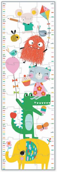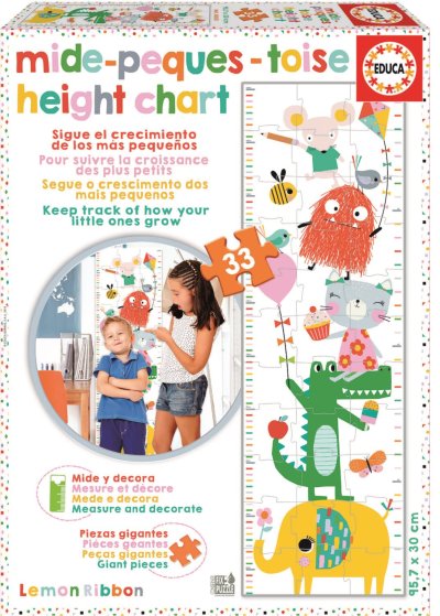 Velký dětský růstový metr s motivem postaviček Lemon Ribbon. V balení je přibaleno lepidlo pro slepení a 10 lepících štítků pro zapisování výšky. Díky velkým dílkům se bude metr dětem dobře skládat a užijí si spoustu zábavy! Po složení puzzle jej slepte a nalepte na zeď 55 cm od podlahy. Vhodné pro děti od 3 let. Rozměr složeného puzzle cca 30 x 95,7 cm