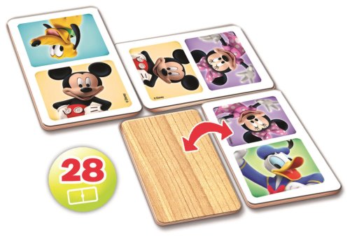 Zábavná hra pro děti Domino s pestrobarevnými obrázky oblíbených hrdinů Vašich dětí - Mickey Mouse, Pes Pluto, Kačer Donald, Minnie. Je vyrobeno ze dřeva, Vaše dítě tak bude při hře v kontaktu s přírodními materiály. Domino by nemělo chybět v žádné domácnosti s dětmi. Balení obsahuje 28 hracích kamenů.
