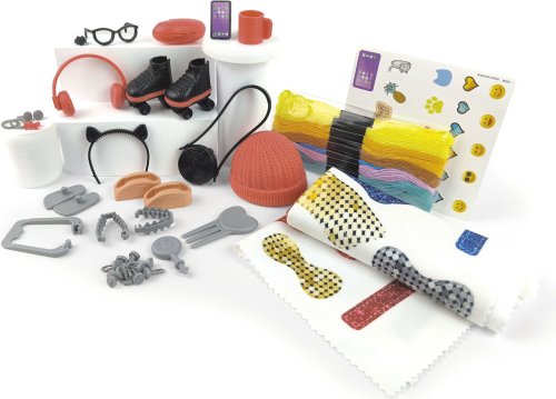 Balení obsahuje: sestavitelnou panenku, látku s předtištěnými střihy 61x32 cm, módní doplňky, bavlnky na vlasy, děrovač oděvů, příslušenství, obrázkový návod. Kreativní sady My Model Doll Design jsou rouzděleny podle různých témat: Módní ateliér, Oslava, Popová hvězda, Glam Chic, Svět fantazie a Ležérní styl.