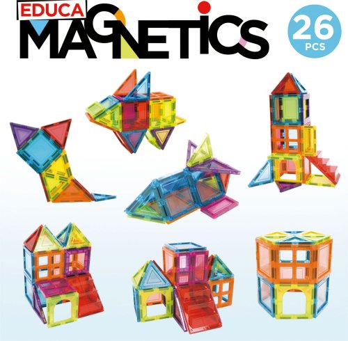 Představ si - postav - uč se! Kreativní magnetická stavebnice Magnetics od španělského výrobce EDUCA umožňuje sestavovat velké množství trojrozměrných objektů, pomocí dvourozměrných plastových mnohoúhelníků.