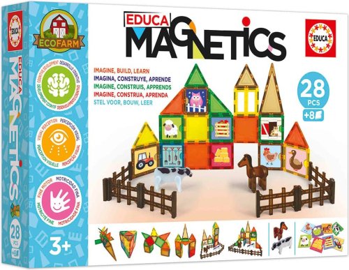 Představ si - postav - uč se! Kreativní magnetická stavebnice Magnetics od španělského výrobce EDUCA umožňuje sestavovat velké množství trojrozměrných objektů, pomocí dvourozměrných plastových mnohoúhelníků.