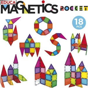 Představ si - postav - uč se! Kreativní magnetická stavebnice Magnetics od španělského výrobce EDUCA umožňuje sestavovat velké množství trojrozměrných objektů, pomocí dvourozměrných plastových mnohoúhelníků. Vlastnosti: