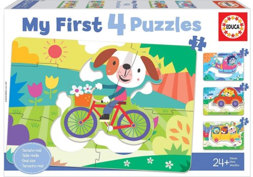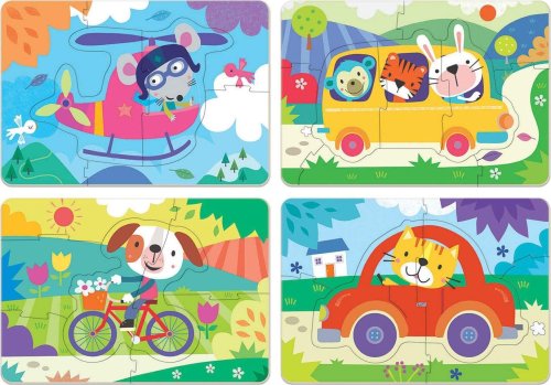 Progresivní dětské puzzle od španělské firmy EDUCA s různou obtížností, které děti zabaví na delší dobu. Čtyři samostatné puzzle o velikosti 24 x 16 cm, ale s různým počtem dílků (od 5 do 8), postupně vedou ke zdokonalování dítěte při skládání a zvyšování obtížnosti. Z každého motivu můžete také samostatně vyjmout a poskládat celý dopravní prostředek. Rozměr složeného puzzle cca 24 x 16 cm