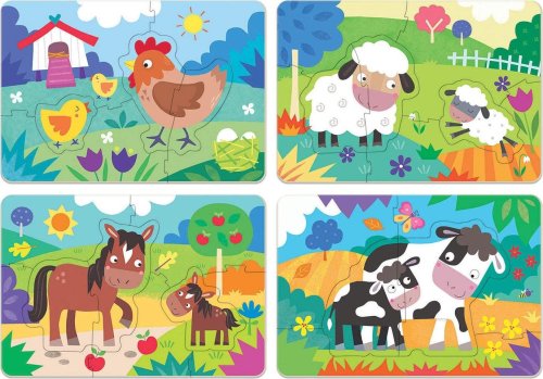 Progresivní dětské puzzle od španělské firmy EDUCA s různou obtížností, které děti zabaví na delší dobu. Čtyři samostatné puzzle o velikosti 24 x 16 cm, ale s různým počtem dílků (od 5 do 8), postupně vedou ke zdokonalování dítěte při skládání a zvyšování obtížnosti. Z každého motivu můžete také samostatně vyjmout a poskládat celá zvířátka. Rozměr složeného puzzle cca 24 x 16 cm