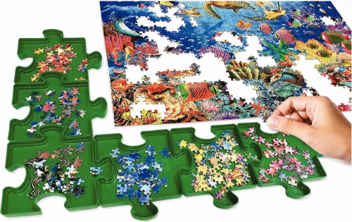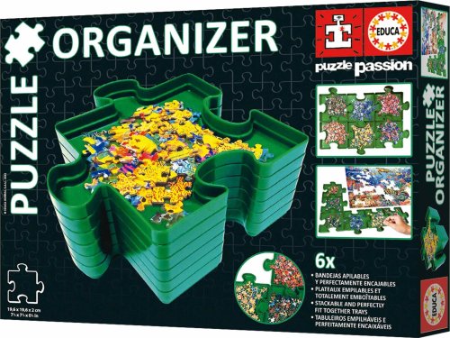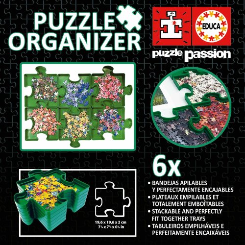 Praktický pomocník pro třídění dílků puzzle podle barvy nebo tvaru. - šest stohovatelných plastových zásobníků ve tvaru puzzle dílku - rozměry 19,6 x 19,6 x 2cm - misky lze skládat na sebe nebo spojovat do požadovaného tvaru - zásobníky do sebe dokonale zapadají