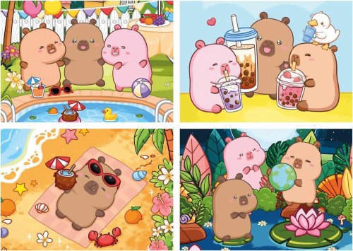 Čtyři samostatné puzzle o velikosti 28 x 20 cm, ale s různým počtem dílků (od 20 do 80), postupně vedou ke zdokonalování dítěte při skládání a zvyšování obtížnosti.