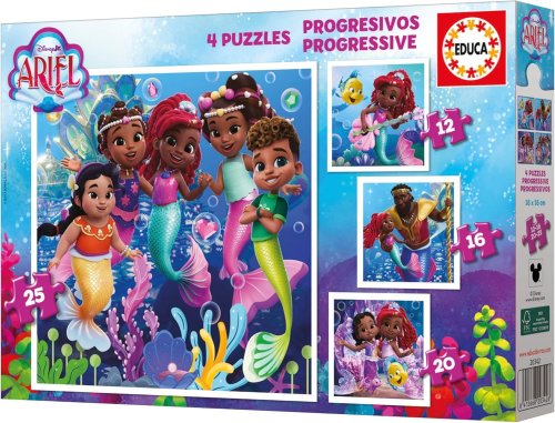 Soubor čtyř progresivních puzzle EDUCA - s různou obtížností a různě velkými dílky. Rozměr složeného puzzle cca 16 x 16 cm