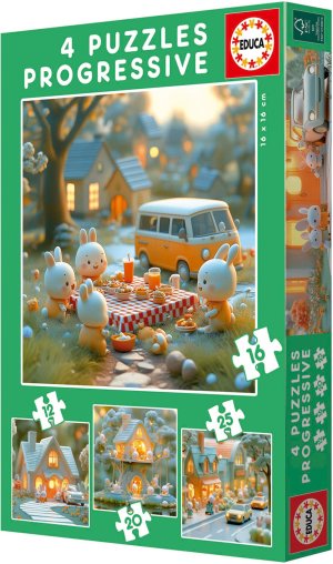 Soubor čtyř progresivních puzzle EDUCA - s různou obtížností a různě velkými dílky. Rozměr složeného puzzle cca 16 x 16 cm