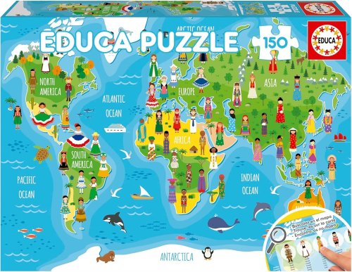 Zeměpisné puzzle pro děti s ilustracemi dívek z celého světa. Součástí balení je i informační leták. Jakmile puzzle poskládáte, můžete jednotlivé dívky hledat na mapě a pojmenovávat země. Poznámka: Texty jsou uvedeny v anglickém jazyce. Rozměr složeného puzzle cca 48 x 34 cm