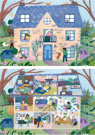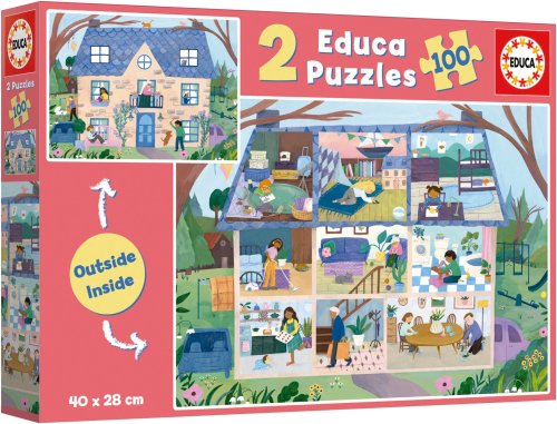 EDUCA Puzzle Outside,Inside Dům 2x100 dílků